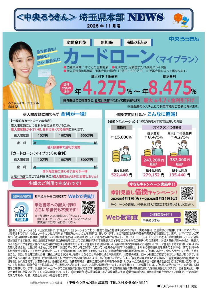 〈中央ろうきん〉埼玉県本部NEWS(2025年11月号)発行