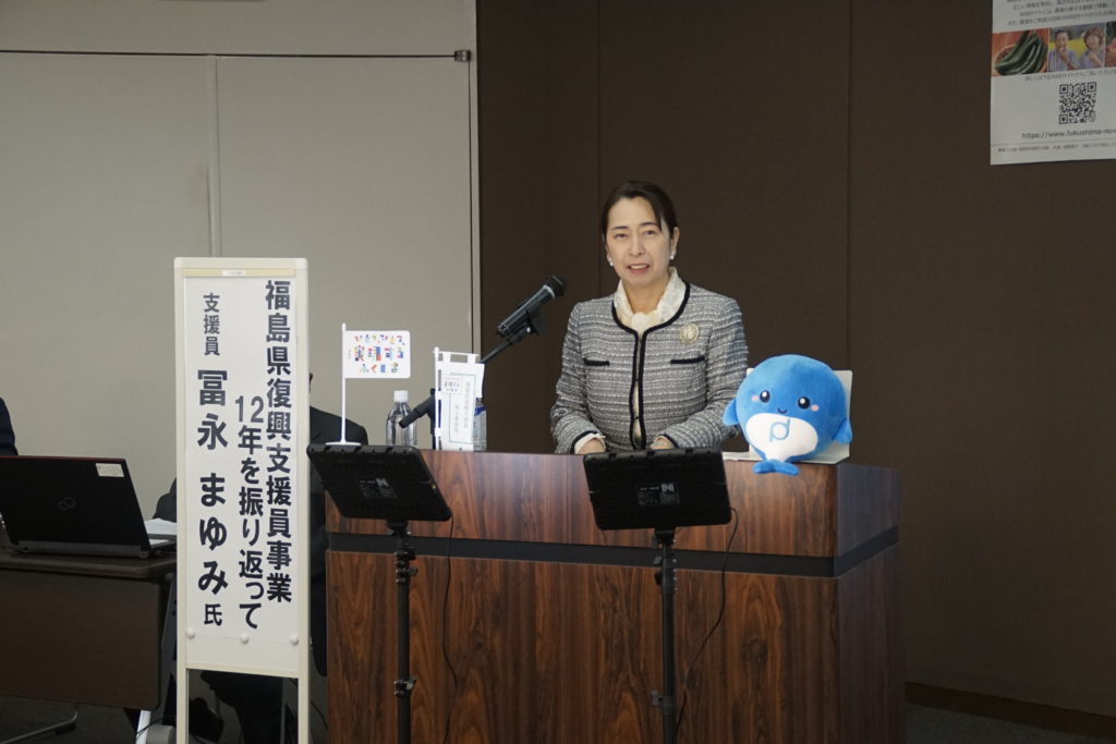 【プログラム】 ◇福島県の概況説明 「ふくしまの今を語る人」運営事務局 千葉 和也 氏 ◇講演Ⅰ テーマ:ふくしまの今を語る 講師:藤田 浩志 氏 農家8代目継承者 日本野菜ソムリエ協会認定野菜ソムリエプロ ◇講演Ⅱ テーマ:福島県復興支援員事業12年を振り返って 伝え人:冨永 まゆみ 氏 福島県復興支援員